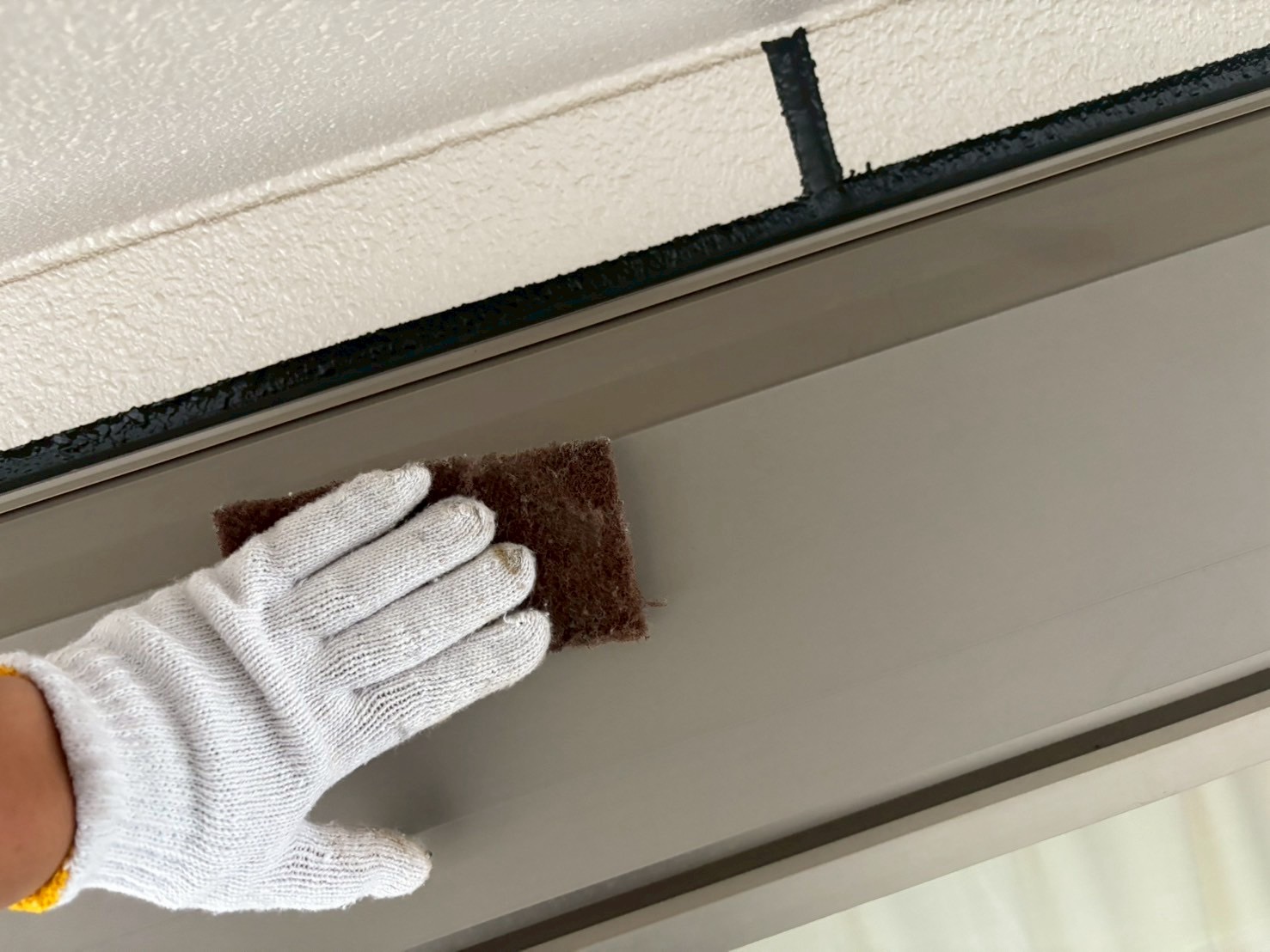 目粗しは、ケレンの程度が最も軽い状態の「ケレン4種」にあたる工程です。塗料の密着性を高めるのが主な目的で、鉄部の表面に細かな傷を付けることにより、塗料の接触面積を広げます。