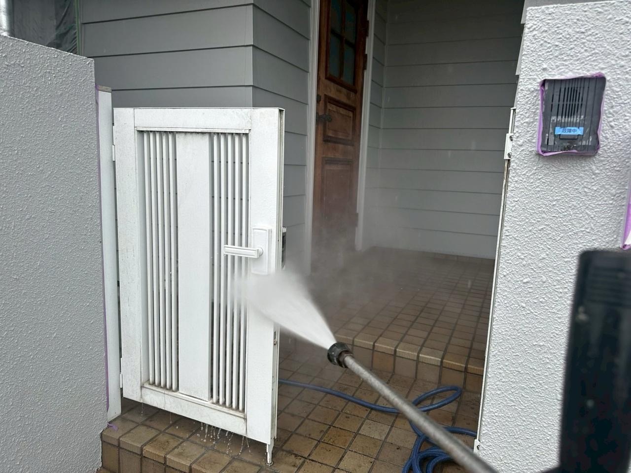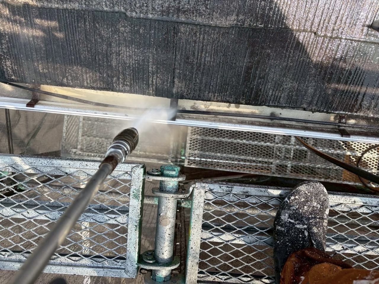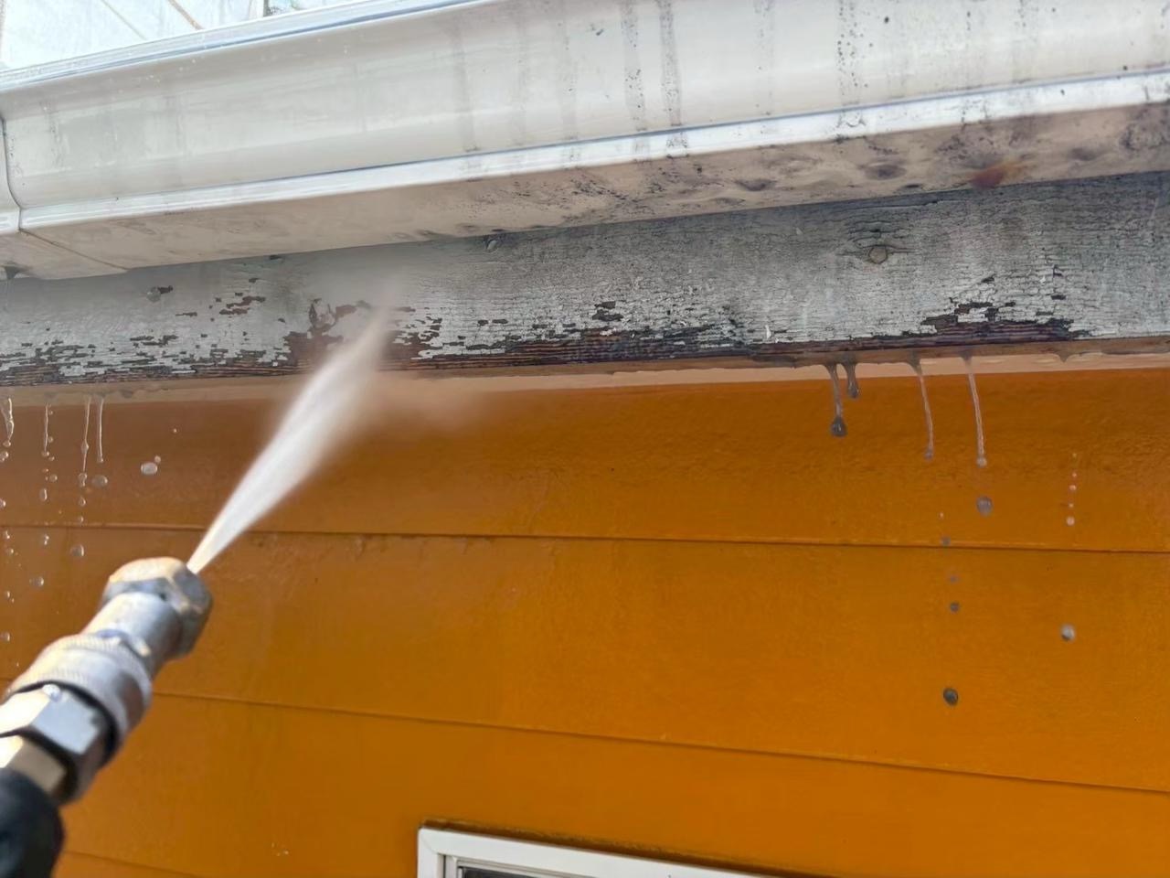 4. 外壁、付帯部と徐々に下へ高圧洗浄を行います