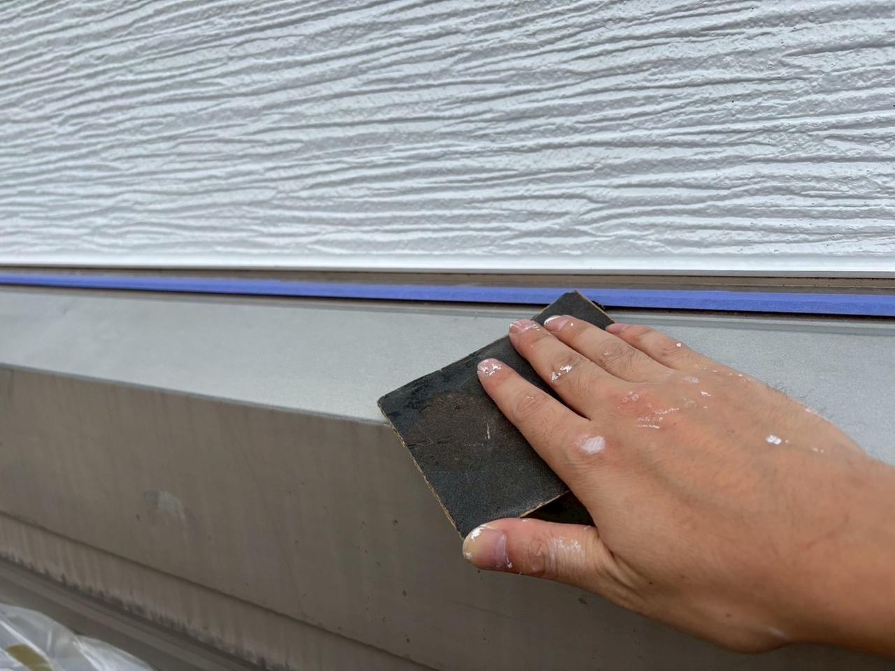 目粗しは、ケレンの程度が最も軽い状態の「ケレン4種」にあたる工程です。塗料の密着性を高めるのが主な目的で、鉄部の表面に細かな傷を付けることにより、塗料の接触面積を広げます。