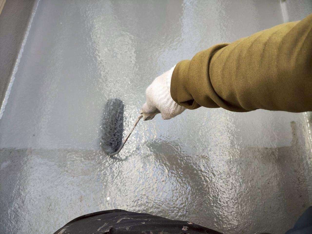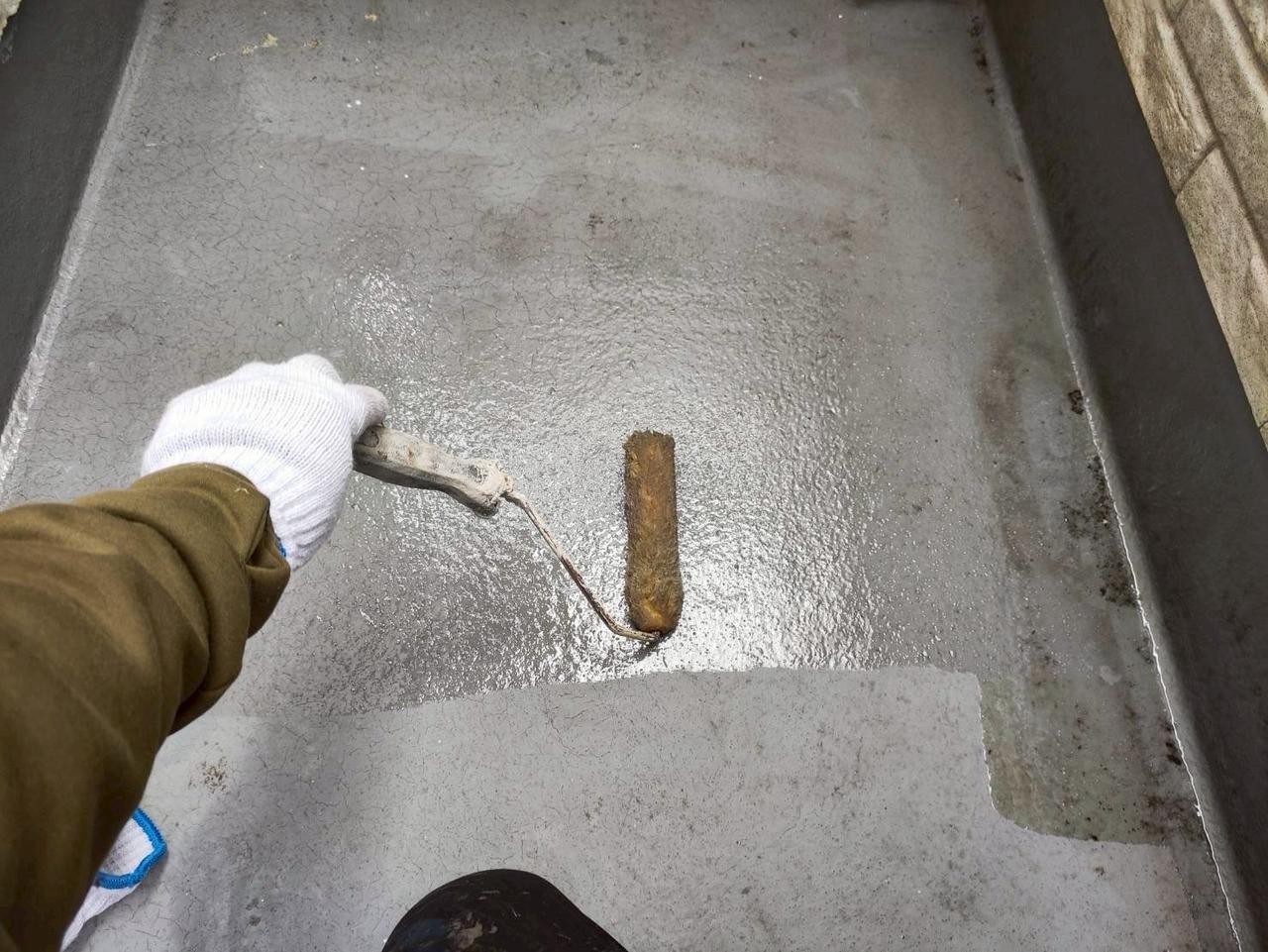 施工方法: 下地にウレタン樹脂を塗布し、乾燥させることで防水層を作ります。