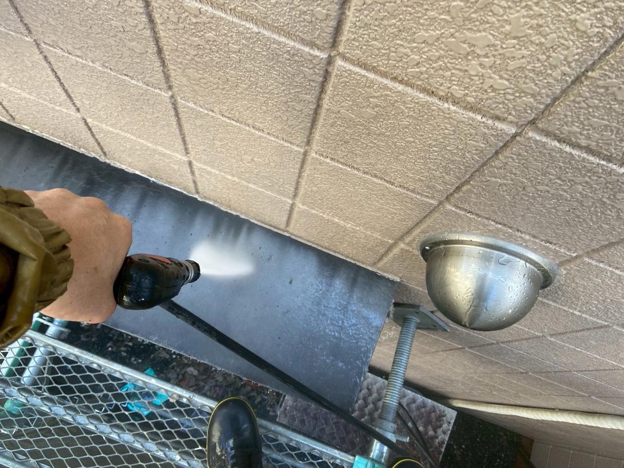 4. 外壁、付帯部と徐々に下へ高圧洗浄を行います