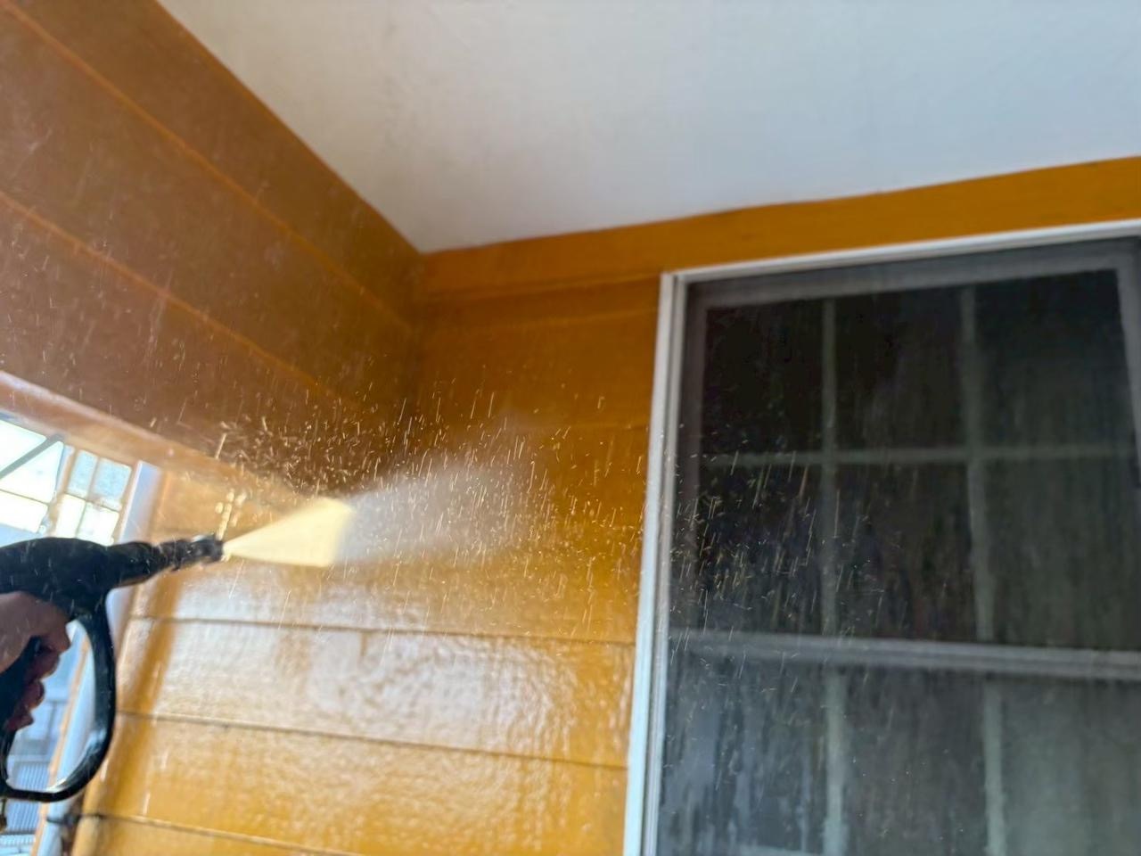 4. 外壁、付帯部と徐々に下へ高圧洗浄を行います