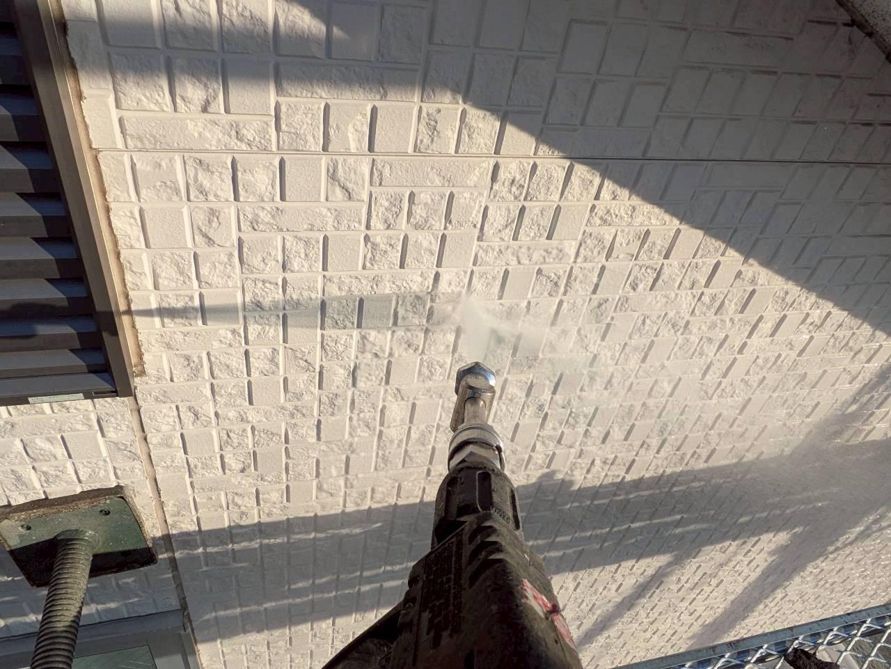 4. 外壁、付帯部と徐々に下へ高圧洗浄を行います