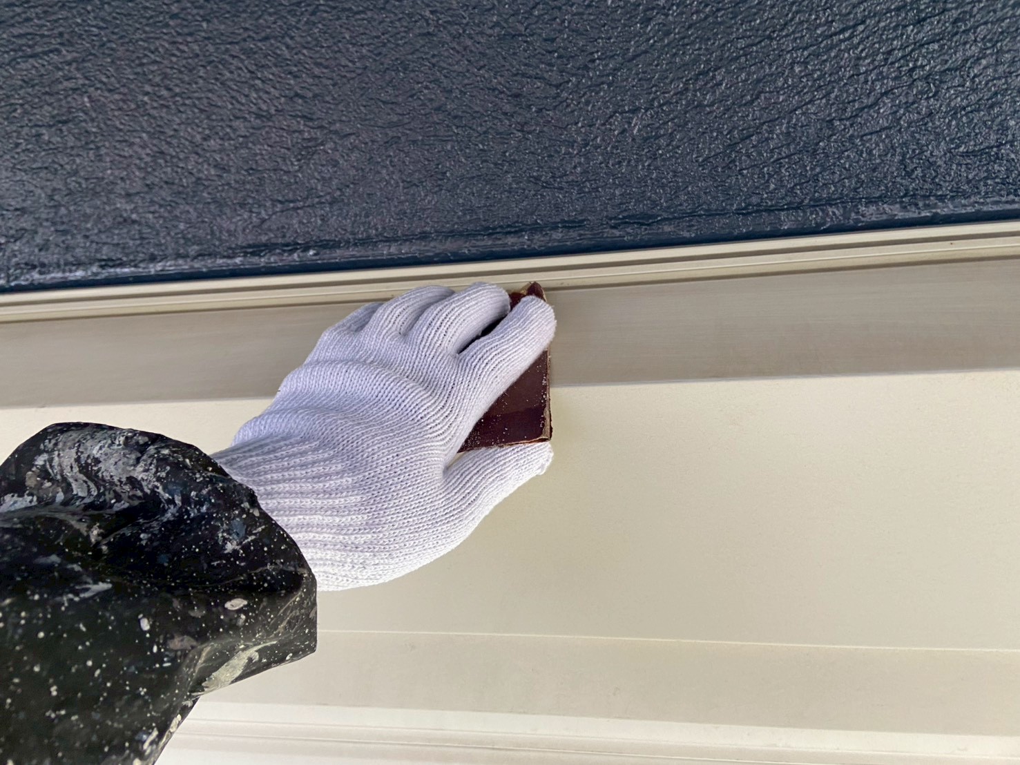 目粗しは、ケレンの程度が最も軽い状態の「ケレン4種」にあたる工程です。塗料の密着性を高めるのが主な目的で、鉄部の表面に細かな傷を付けることにより、塗料の接触面積を広げます。