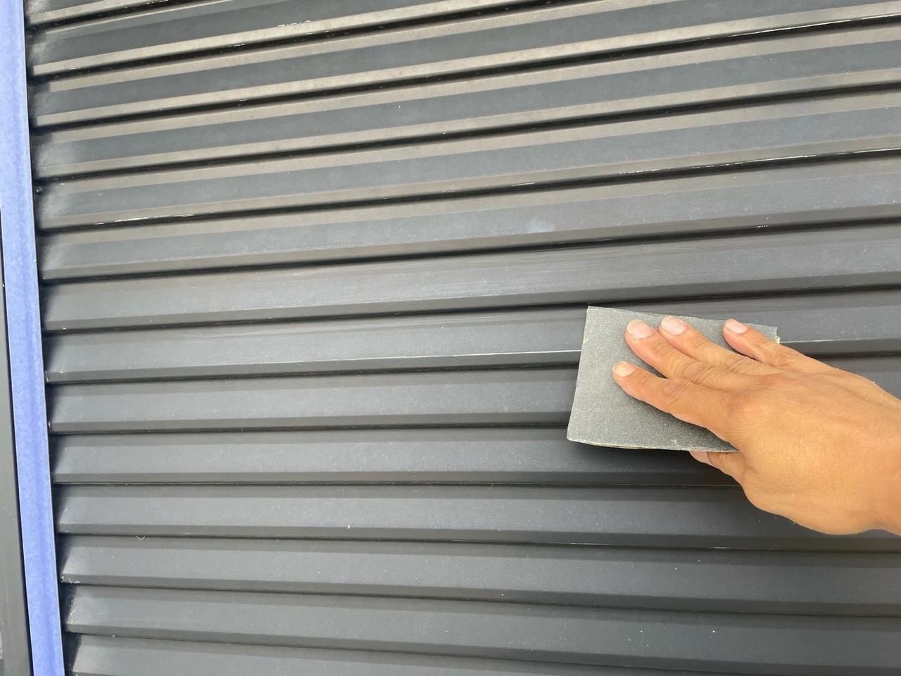 目粗しは、ケレンの程度が最も軽い状態の「ケレン4種」にあたる工程です。塗料の密着性を高めるのが主な目的で、鉄部の表面に細かな傷を付けることにより、塗料の接触面積を広げます。