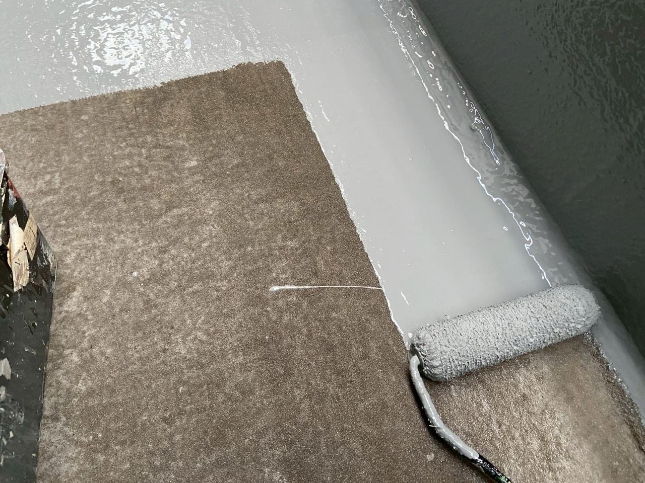 施工方法: 下地にウレタン樹脂を塗布し、乾燥させることで防水層を作ります。