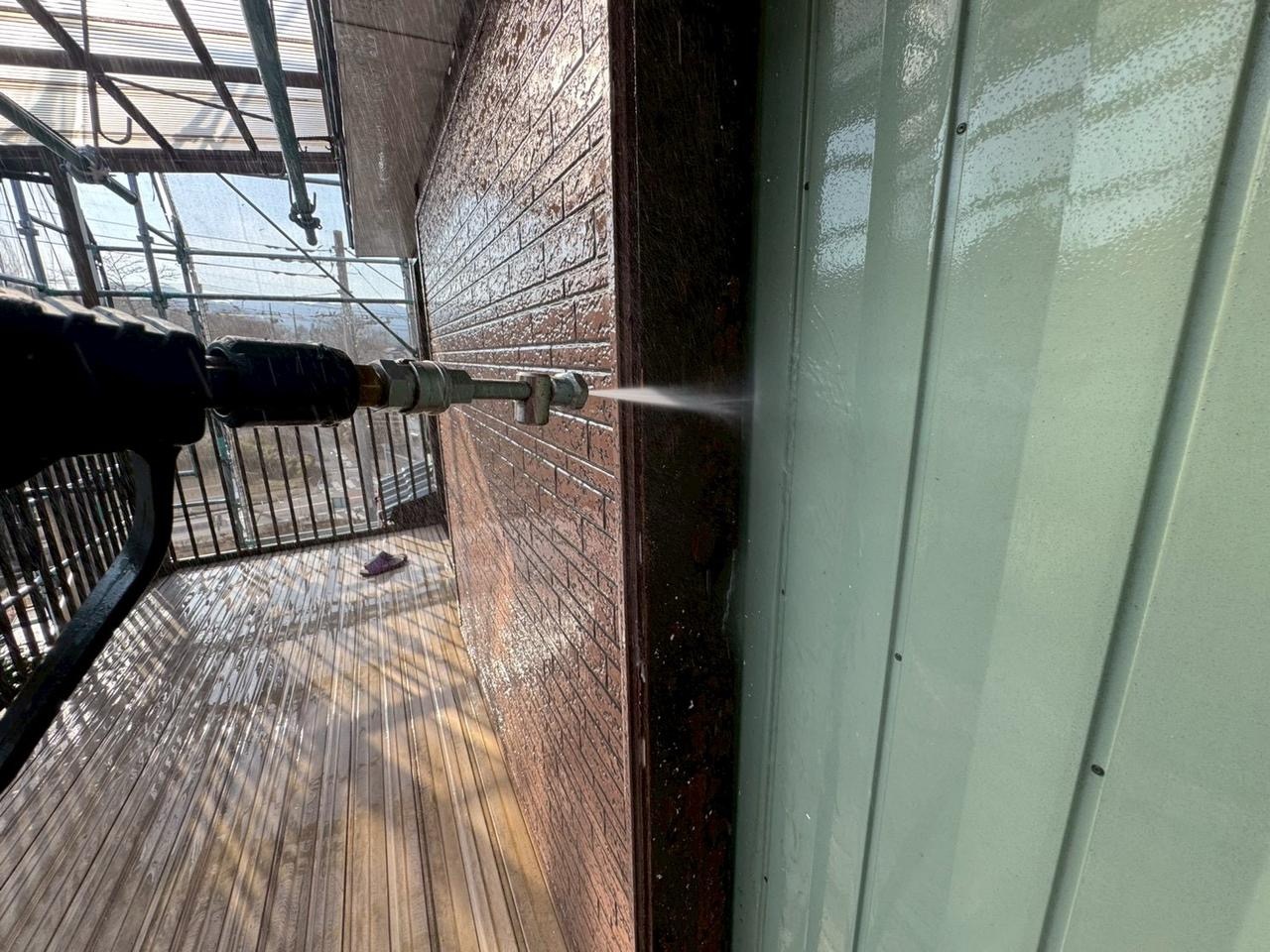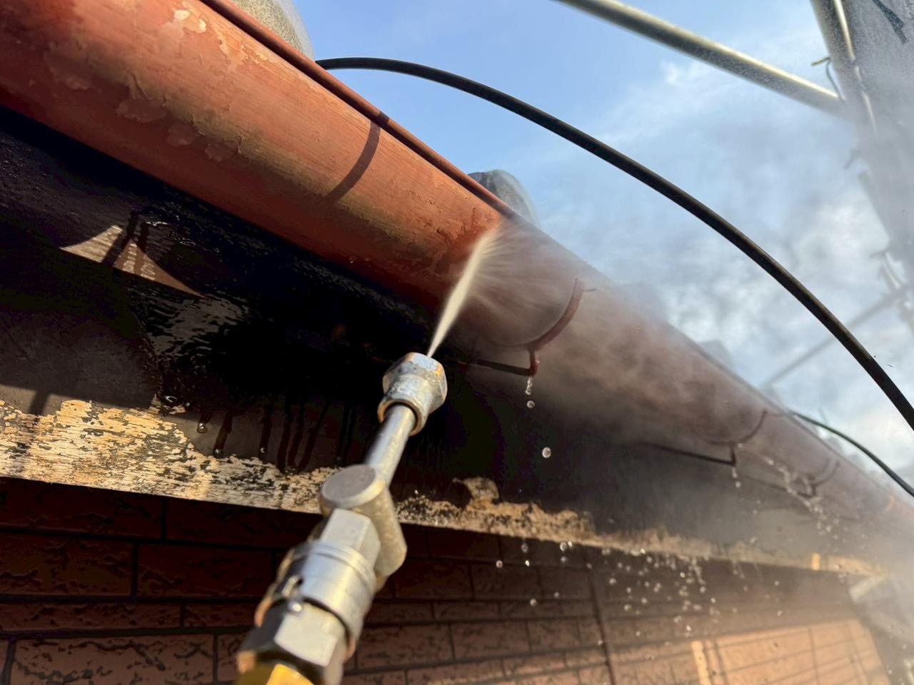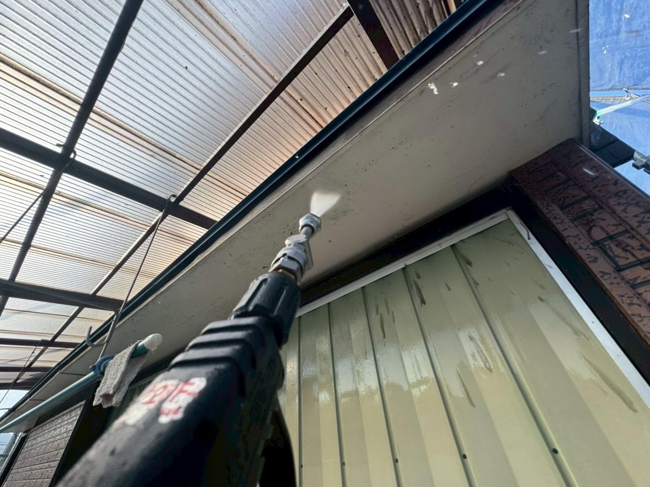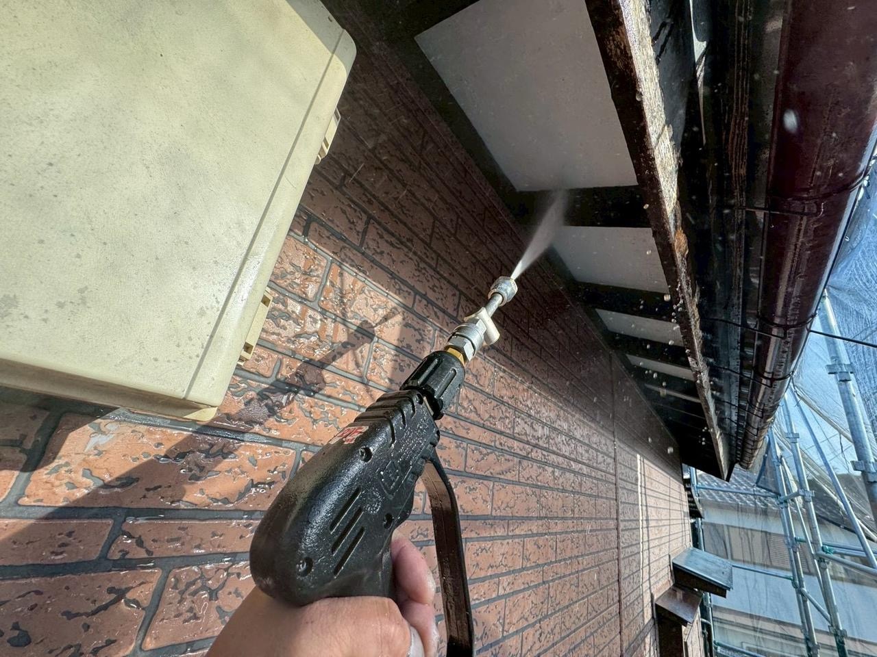 4. 外壁、付帯部と徐々に下へ高圧洗浄を行います