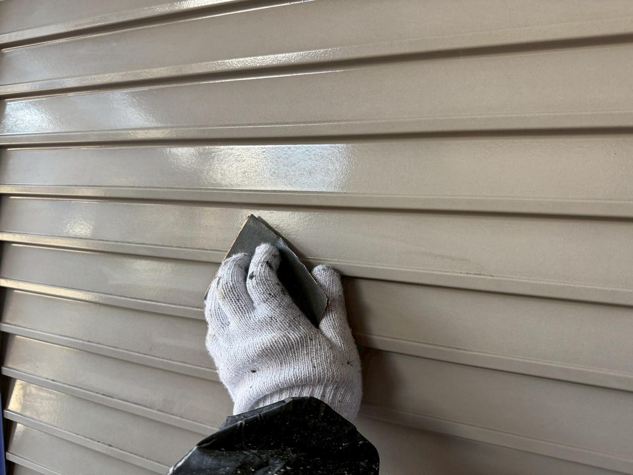 目粗しは、ケレンの程度が最も軽い状態の「ケレン4種」にあたる工程です。塗料の密着性を高めるのが主な目的で、鉄部の表面に細かな傷を付けることにより、塗料の接触面積を広げます。