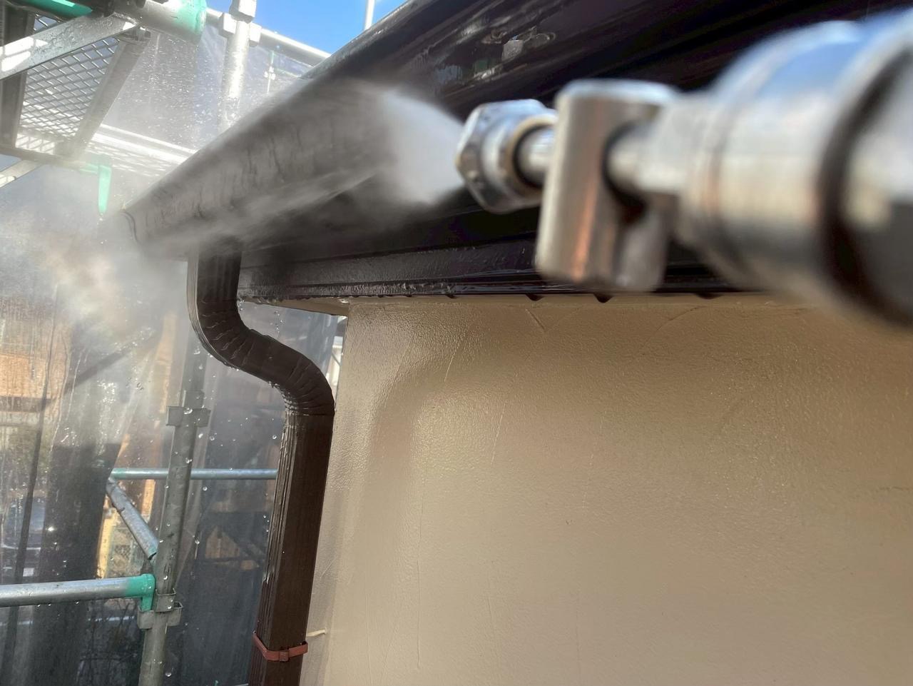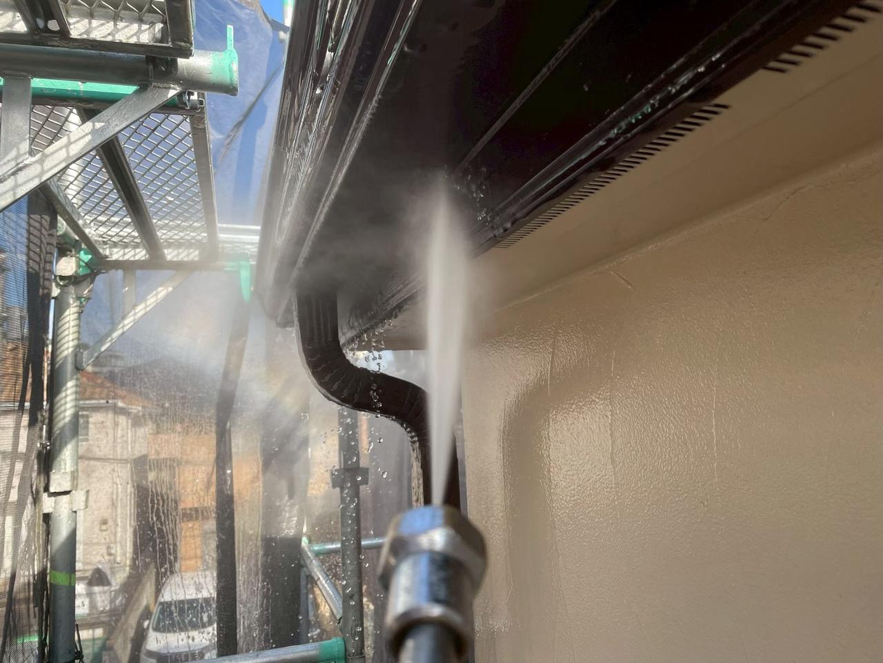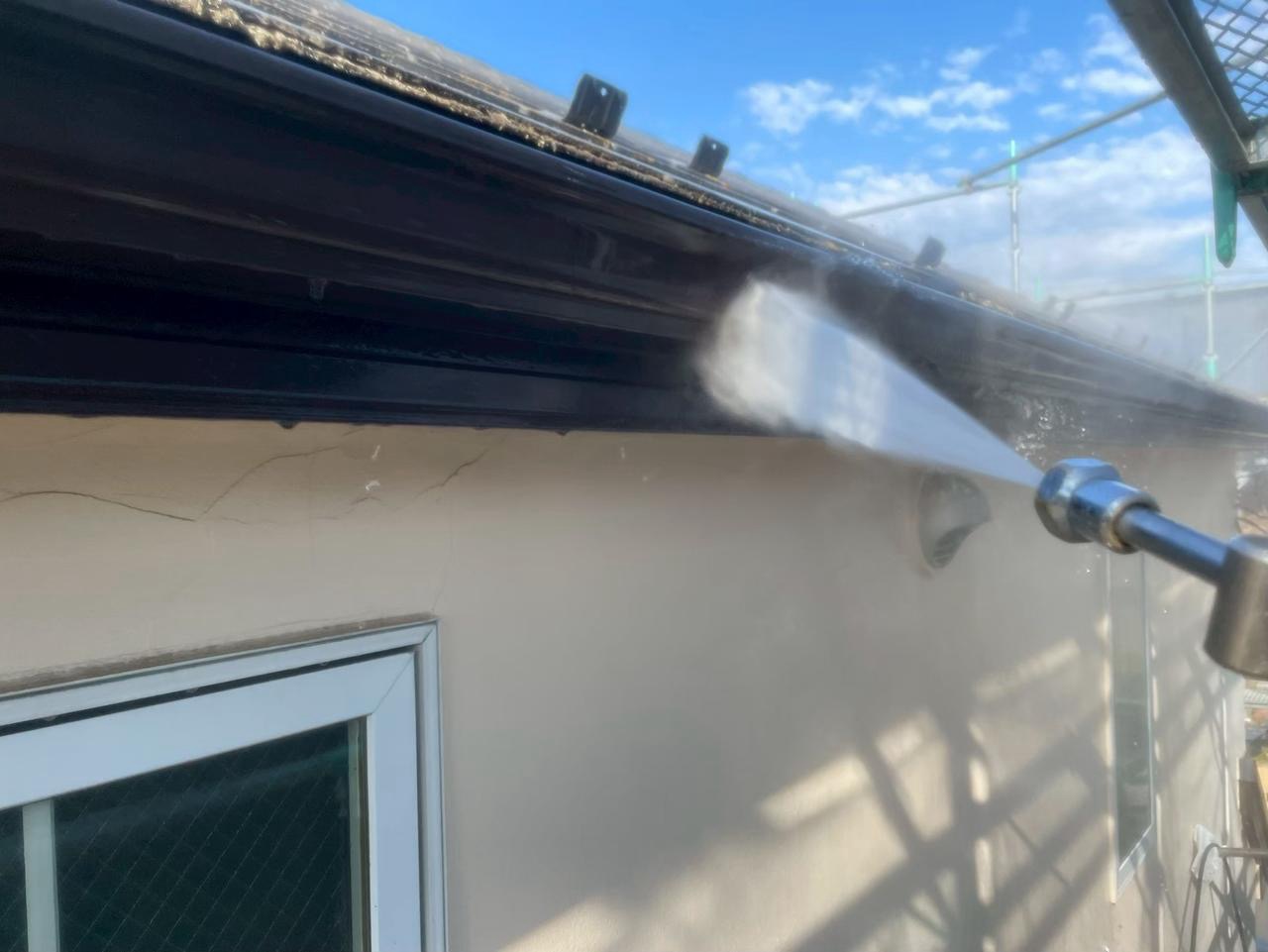 4. 外壁、付帯部と徐々に下へ高圧洗浄を行います
